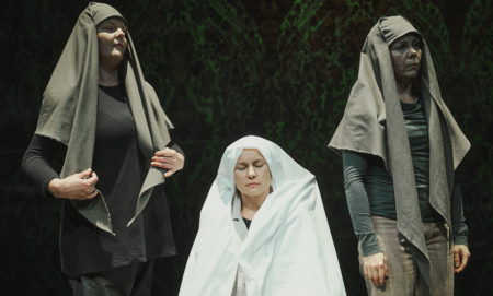 Tradycja wystawień tej sztuki nie jest nadzwyczaj bogata, ale pojawiają się w niej nazwiska m.in. Leona Schillera, Krystyny Skuszanki, Jerzego Jarockiego. Inscenizacja Piotra Cieplaka stawia na minimalizm środków wizualnych, który w połączeniu z bogactwem sfery dźwiękowej ma tu posłużyć do uwypuklenia roli słowa – głównego aktora sztuki, które wraz z muzyką ożywia wyobraźnię widzów.